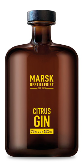 MARSK GIN CITRUS 40%. Marsk Citrus Gin destilleret med citron & kanelbark & peber. Serveres med en god tonic og citronskræl. Prøv også at servere ginnen med en stor kugle citron sorbet og top med tonic, citronskræl & rosmarin. Produceret på Marskdestilleriets kobberkedel -London Dry Gin.